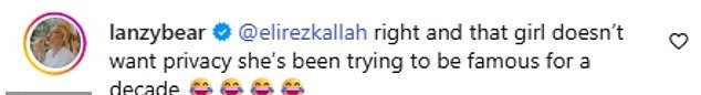 据称其全家在尼古拉与安瓦尔恋爱期间及之后都与尼古拉有过矛盾,阿拉娜附和了许多人的看法,回复埃利说:“没错,而且那个女孩不想要隐私,她试图出名已经有十年了”。
