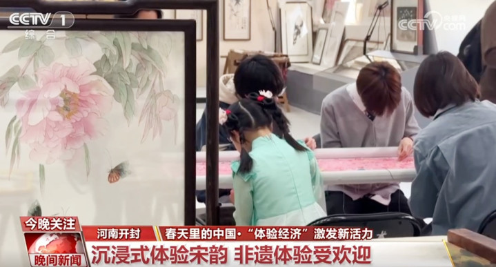 在河南开封清朗上河园等景区内,各大非遗市集东谈主头攒动。在汴绣工坊内,搭客牵线搭桥,体验宋绣的详细娴雅;朱仙镇木版年画算作国度级非遗,搭客列队体验手工拓印,在推论中感受非遗之好意思。