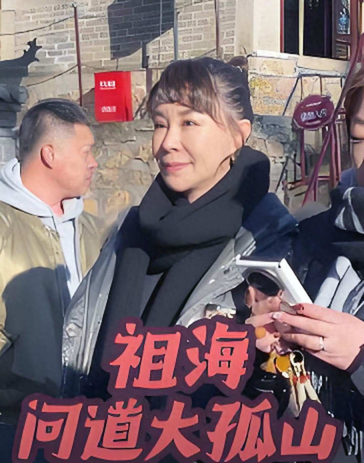 近期有网友在大孤山偶遇了她,穿着羽绒服,抱着千年银杏树在祈福。