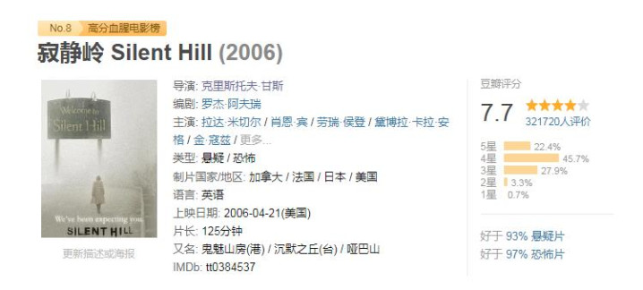 2006年,由同名游戏改编而成的《寂寞岭》,上映仅三天就赢得了2020万好意思元票房。