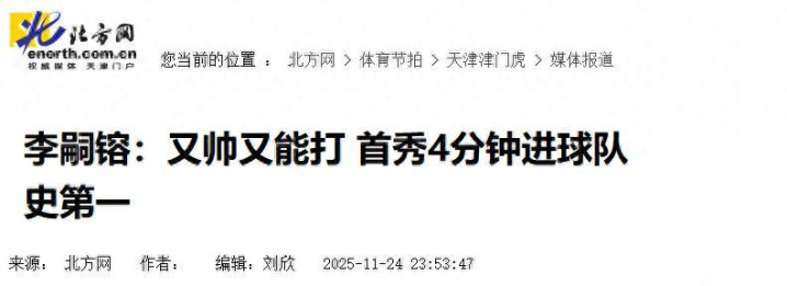 那然而津门虎队史首秀最快进球记录,亦然阿谁赛季中超最快进球记录。