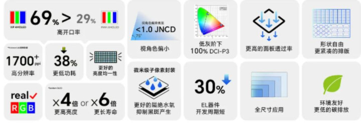 与传统FMM比较,ViP时间上风全面:启齿率从29%跃升至69%,同等亮度功耗降近四成;合作叠层时间,寿命或亮度可达传统6倍或4倍;像素密度达1700ppi且救援Real RGB,告别彩边隐隐,笼罩1至80英寸全尺寸。