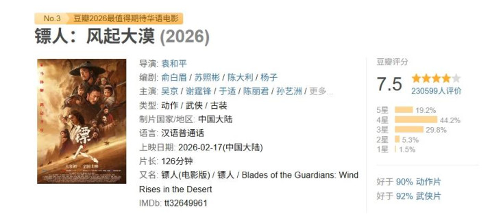 上映三七天,票房破8亿、评分7.5分的《镖东说念主:风起大漠》,被好多不雅众觉得应该有更好的收获。